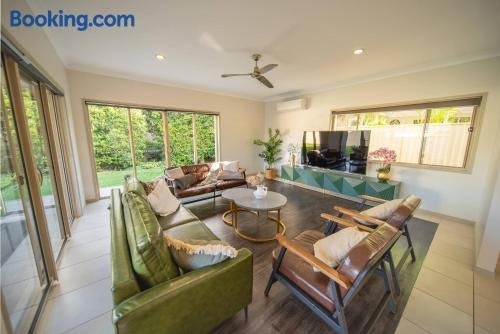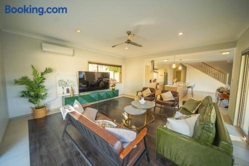 يقع مكان إقامة "Family Friendly Funhouse close to All Theme Parks" ضمن مسافة 2.9 كم من عالم الأحلام و3 كم من وايت واتر ورلد، ويوفر واي فاي مجاني وحديقة. يقع بيت العطلات هذا على بُعد 11 كم من محطة قطارات Helensvale و16 كم من هاربور تاون غولد كوست.