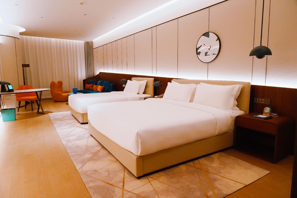 Crafted for coziness, every guestroom provides an array of features, guaranteeing a tranquil night's sleep while maintaining the level of comfort.For a more enjoyable stay, select rooms at hotel are equipped with linen service, blackout curtains and air conditioning. For certain chosen rooms, guests can enjoy in-room amusement like daily newspaper and television as a part of their stay.Rest assured that your hydration needs will be met, as some guestrooms are equipped with a refrigerator, a coffee or tea maker, bottled water, instant coffee and instant tea. Maintain your cleanliness and comfort using a hair dryer, toiletries and bathrobes available in select guest restrooms. Chosen accommodation prices might include entry to the executive lounge, offering premium services amid an ambiance of refined extravagance.