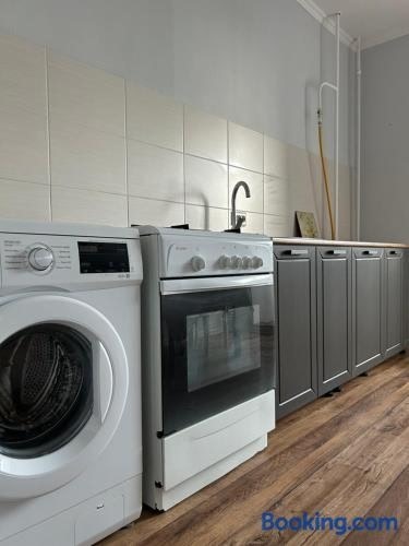 يقع مكان إقامة "Minimalist 2-room Apartment" في أكتوبي. يمكن للضيوف المقيمين في هذه الشقة استخدام المطبخ المجهز بالكامل والشرفة. تتوفر (1) غرفة نوم للضيوف في هذه الشقة، بالإضافة إلى تلفزيون بشاشة مسطحة، وجهاز تكييف، وغرفة معيشة.