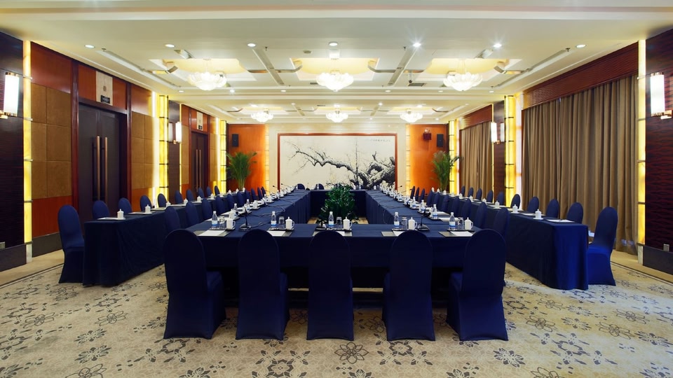 : The Chongqing Empark Grand Hotel (Chongqing Shiji Jinyuan Dafandian) is a five-star hotel located in the city's central business district, just a 20-minute drive from Jiangbei airport. The hotel's 402 rooms are all equipped with free internet access and satellite television, while guests may also take advantage of laundry, food delivery, transportation and ticket-booking services. The Empark Grand has several restaurants serving Chinese and Japanese cuisine, but also offers Western food in the steak house, cafeteria, tea house and bar. There are also 13 meeting halls of different sizes and a 1000-seat banquet hall are available upon request. Underground, the hotel boasts the Las Vegas-themed Gourmet Street, which comprises various recreational facilities including a swimming pool, gymnasium, supermarket, cinema, night club and KTV
