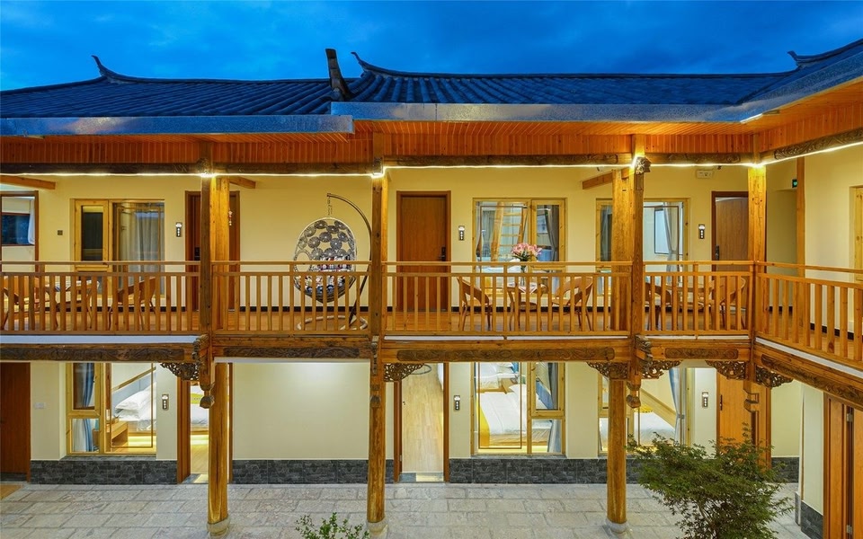 The Old Town of Lijiang • View the Ancient Pavilion | Sunshine Jinshan Panorama is a well built, standard Naxi style courtyard style home stay in the ancient city. The home stay is close to the famous scenic spot [Dashui] [Sifang Street], located in the middle of Lion Mountain, which allows you to view the beautiful snow mountain scenery without blocking. Vehicles can also directly reach the door of the home stay, with convenient transportation; Next to the homestay is the [One meter Sunshine Shooting Point]. The viewing platform can overlook the whole the Old Town of Lijiang, and it is also one of the viewing places to see the sunrise scenery; Living here can help you stay away from the hustle and bustle of the city, give up your restless mood, and enjoy the soft time of Lijiang to the fullest.Pushing open the ancient and heavy gate, a garden and courtyard are displayed in front of you. The flowers in the courtyard compete with each other, enjoying the warm sunshine here. Tasting Pu'er tea, you will forget time, forget the hustle and bustle of the world, and only share a poet like reclusive life with the blue sky and white clouds.The main building of the homestay is a two-story wooden structure with a horse shaped corner, which follows the traditional Naxi style of residential architecture - the "four in five courtyard" architectural pattern, with a simple and elegant design. The homestay has twenty rooms with different styles, including garden view rooms, snow mountain view rooms, ancient city view rooms, and duplex loft rooms, hoping to meet your accommodation needs. All bedding in the guest rooms is custom-made by the group supplier for us, and all toiletries are equipped with high-end Toto bathrooms. The bathroom is dry and wet separated, with electric curtains, projection TV, and intelligent guest control throughout the room; At the same time, all guest rooms adopt expensive air pumps as the hot water circulation system, with a constant water temperature to ensure a continuous supply of hot water, allowing customers to fully enjoy the pleasure of bathing.