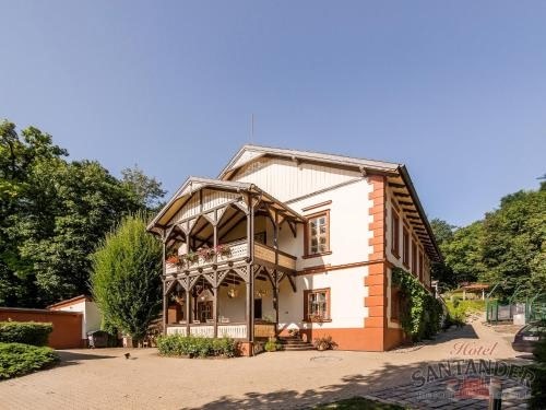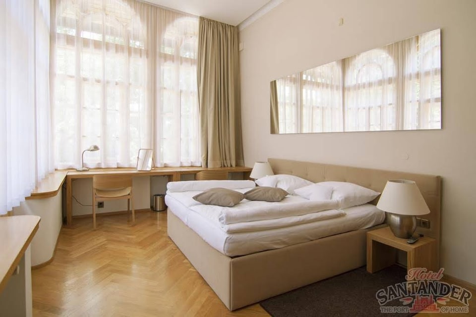 Hotel Santander offers luxurious accommodation in a villa dating back to the early 1900s. Surrounded by a garden, it is a 10-minute public tram ride to Brnos city centre. The BVV exhibition area is 10 minutes walk away. Guests can relax in a comfortable chair with their favourite book or magazine in the reading room, offering a view over Brno. Pleasantly cool in summer and with an open fire in winter, the lounge area features harmonious colours, beautiful flowers and interesting paintings. Breakfast is served there every morning. The individually furnished rooms are either facing the garden, tennis court or the city of Brno. The buffet breakfast comprises milk, tea, coffee, juice, mineral water, muesli, corn flakes, yoghurt, fresh bread and rolls, sweet pastries and fruit. Special dietary requirements can be taken into consideration and breakfast can also be enjoyed in the room. Guests can play tennis, go cycling on the adjacent cycling path connecting Brno and Vienna or take a walk along the Svratka River in the neighbouring woods. Disclaimer notification: Amenities are subject to availability and may be chargeable as per the hotel policy.