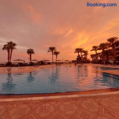 يقع مكان إقامة "Esplanada flat with free beach, no single men" في مركز الغردقة، ويوفر مسبحاً خارجياً وإطلالة على البحر، بالإضافة إلى حديقة ومنطقة شاطئ خاص. يوفر مكان الإقامة هذا المقابل للشاطئ إمكانية استخدام الشرفة والمواقف الخاصة للسيارات مجاناً.