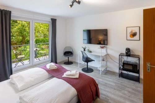 Modern DesignExperience a stylish stay in our well-designed units featuring a kitchen, balcony, and seating area. Enjoy garden and inner courtyard views for a peaceful retreat.Convenient AmenitiesRelax with a flat-screen TV, streaming services, and a coffee machine in every room. Benefit from private parking, a minimarket, and essential kitchen appliances for a comfortable stay.Nearby AttractionsExplore popular landmarks such as Church of St. Reinoldi and Marien Church, all just a short distance away. Discover the city with ease from our convenient location.Ready to experience comfort and convenience at MINT Design-Studio mit Balkon? Book your stay now for a memorable trip!