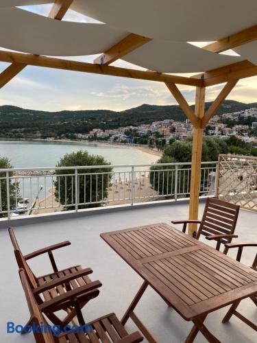 يقع مكان إقامة "Overwave Apartment" في كافالا على بُعد 100 م من شاطئ كالاميتسا (Kalamitsa Beach) و2.4 كم من Archaeological Museum of Kavala، ويوجد فيه جهاز تكييف وشرفة وواي فاي مجاني. يقدم مكان الإقامة إطلالات على البحر والجبل، ويبعد مسافة 3.