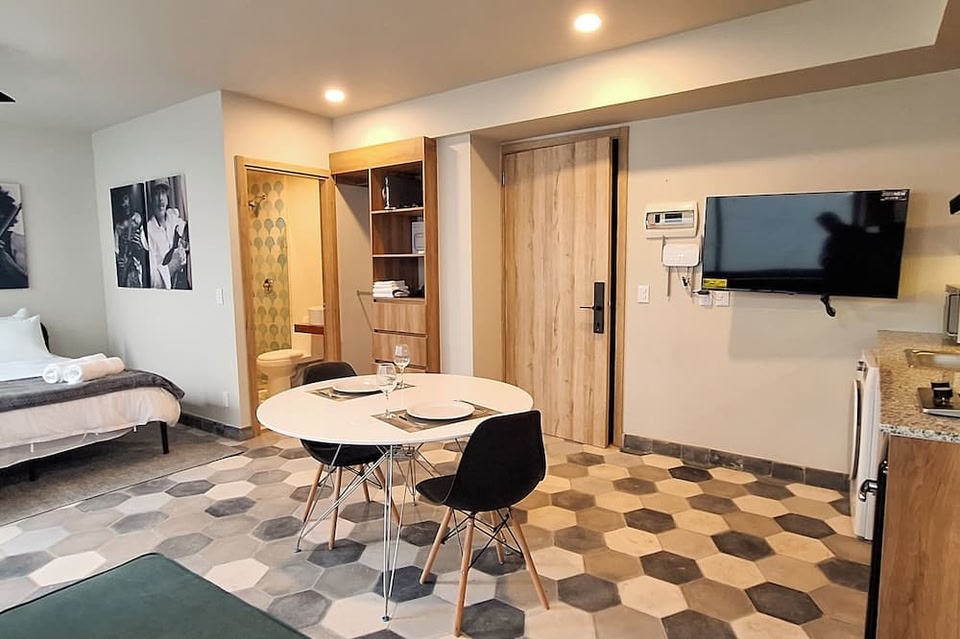Casa 8 features accommodation within less than 1 km of the centre of Guadalajara, with free WiFi, and a kitchen with a microwave, a fridge and kitchenware. There is a private entrance at the aparthotel for the convenience of those who stay.