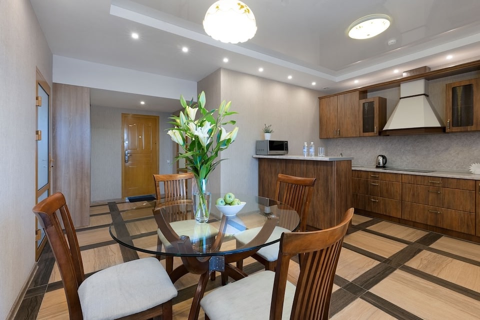 Fedorov Apart Hotel offers top-notch services and amenities, ensuring guests experience utmost comfort. Remain linked during your visit by utilizing the complimentary internet access available.Prior to your check-in date, you can arrange airport transportation services, guaranteeing a seamless and efficient experience for both arrival and departure. Services offered by taxi, car hire and shuttle at the serviced apartment ensure effortless exploration of Barnaul.The serviced apartment offers complimentary parking for guests who arrive with their own mode of transport. Effortlessly plan your daily activities and travel requirements with express check-in or check-out, luggage storage and safety deposit boxes provided by the front desk services.Securing top-notch tickets and reserving prime dining spots become effortless through assistance from the serviced apartment's tours.During your stay at this fantastic serviced apartment, experience comfort and warmth from the delightful on-site fireplace on those chilly days and nights.For extended visits or whenever required, the laundromat, dry cleaning service and laundry service ensures your preferred travel garments remain clean and accessible.During leisurely days and evenings, in-room amenities such as 24-hour room service, room service and daily housekeeping enable you to maximize your stay in the room. The serviced apartment is completely smoke-free. In limited designated zones, smoking is exclusively permitted. Crafted for coziness, every guestroom provides an array of features, guaranteeing a tranquil night's sleep while maintaining the level of comfort. For a more enjoyable stay, select rooms at serviced apartment are equipped with linen service, blackout curtains and air conditioning.At Fedorov Apart Hotel, guests can choose from a variety of room configurations, some of which feature separate living room and balcony or terrace. For certain chosen rooms, guests can enjoy in-room amusement like television and cable TV as a part of their stay. Rest assured that your hydration needs will be met, as some guestrooms are equipped with a refrigerator, bottled water and a coffee or tea maker.It is worth noting that certain guest bathrooms feature a hair dryer, toiletries and bathrobes for your convenience. Begin your holiday mornings right with your essential cup of coffee, offered daily at the cafe on-site. During your visit, indulge in a range of delightful culinary choices at serviced apartment to enhance your experience. Experience a fantastic evening effortlessly! Relish an entertaining night without venturing beyond the confines of the bar.Experience unparalleled comfort as groceries can be brought right to your room at Fedorov Apart Hotel through their distinctive delivery assistance.Fedorov Apart Hotel provides a superb assortment of leisure amenities for guests to enjoy. Treat and spoil yourself by stopping at massage, steam room, spa and sauna for a memorable experience. Begin your holiday perfectly by taking a plunge into the swimming pool.