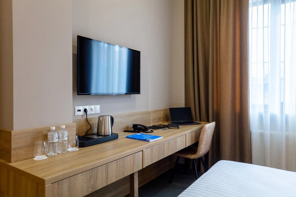 Location A great place to have a rest after an exciting day! DavidRobertSons Hotel is located in Krasnodar. This hotel is located in 3 km from the city center. Guests can take a walk and explore the neighbourhood area of the hotel. Places nearby: Chistyakovskaya Grove, Botanical Garden and Hall of the Krasnodar Philharmonic.At the hotel Guests can stop by the bar. Taste the local cuisine and have a rest in the restaurant. Wi-Fi is available.Room amenities The room is warmly decorated and has everything needed to have a rest after a long eventful day. There is a bathrobe and slippers. The room equipment depends on its category.