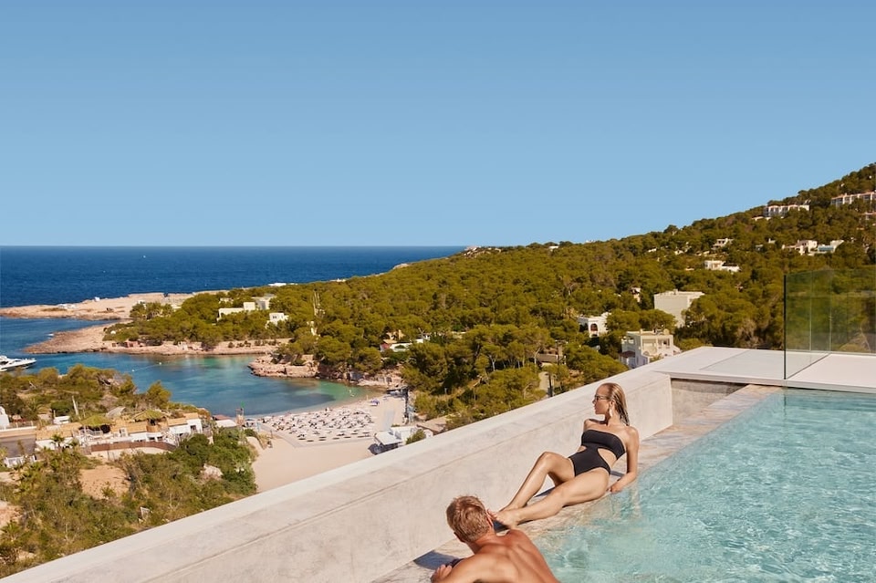 TRS Ibiza Hotel - Adults Only Hotel, a luxury hotel with direct access to the beach, is located in the San Antonio area next to Cala Gració and Cala Gracioneta, two beautiful coves with crystal clear waters surrounded by Mediterranean vegetation.